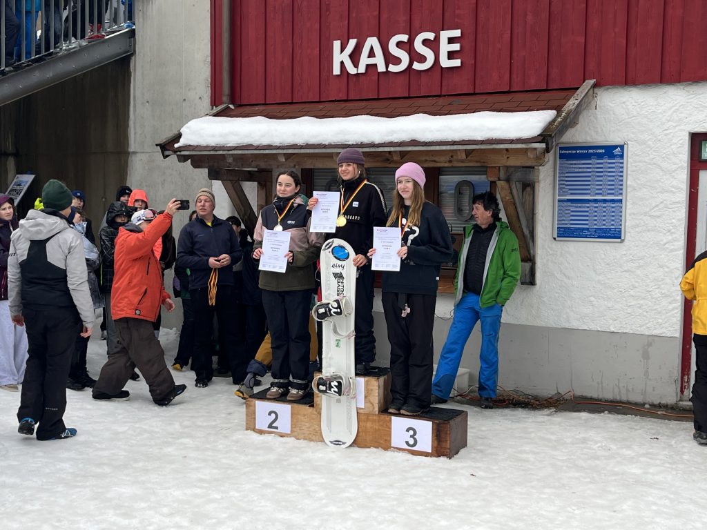 Mit enormer Energie, großem Teamgeist und viel Begeisterung bewältigten die Schülerinnen und Schüler des Freihof den von der SAG gesteckten Rennlauf und sorgten sowohl auf als auch neben der Piste für eine fantastische Stimmung. Der sportliche Höhepunkt des Tages ließ nicht lange auf sich warten: In der Snowboardklasse sicherte sich unser Team durch herausragende Leistungen den verdienten Gesamtsieg und brachte den Pokal ans Freihof-Gymnasium.