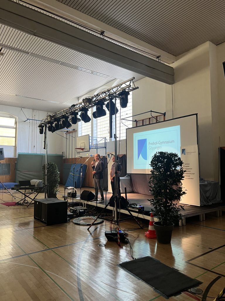 Mit einer feierlichen Einschulungsveranstaltung in der Freihofhalle hat das Freihof Gymnasium seine neuen Fünftklässlerinnen und Fünftklässler begrüßt. Die Feier wurde durch eindrucksvolle Auftritte der Zirkus-AG bereichert, die mit Akrobatik und Hochrädern für Staunen und Begeisterung sorgten. Dank der Technik-AG, die wie immer für die passende Beleuchtung und den perfekten Ton sorgte, wurden die Darbietungen besonders gut in Szene gesetzt.